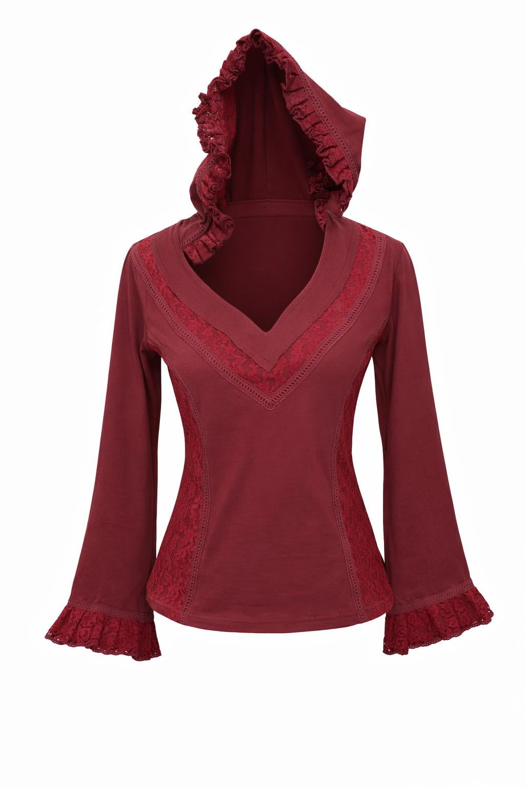 Elven Hoodie Top Marroonrood