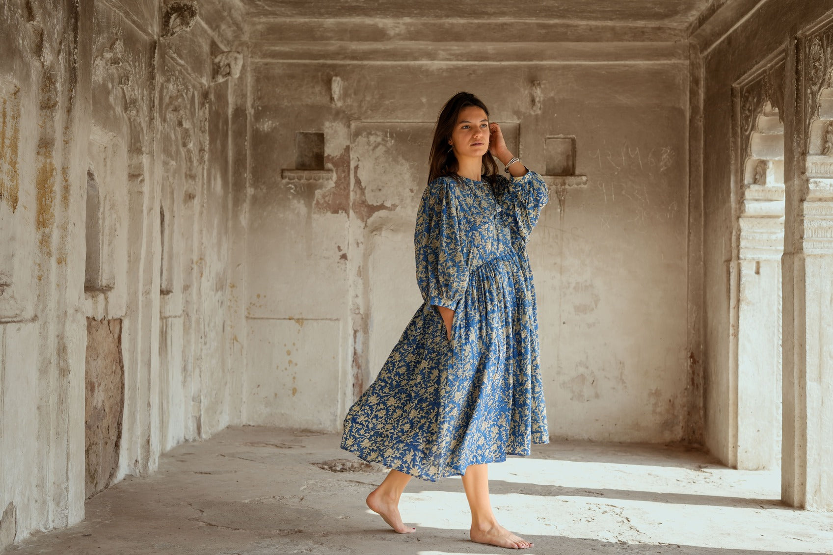 Het materiaal is Handblock print wat de jurk uiterst bijzonder maakt. Dus of je nu in verwachting bent of gewoon op zoek bent naar een jurk die je rondingen flatteert, de Angel Dress is er voor jou! ❤️