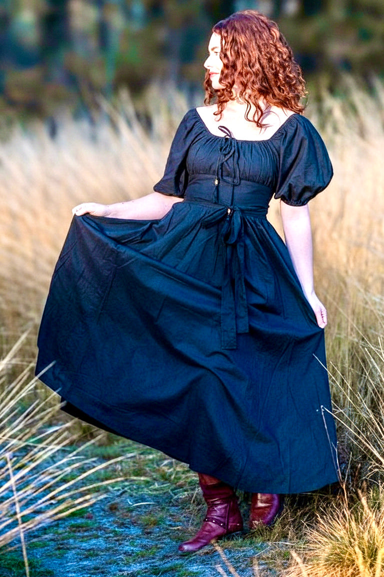 - Taille: 90 cm. t/m 115 cm. (door smockelastiek en corset sluiting)