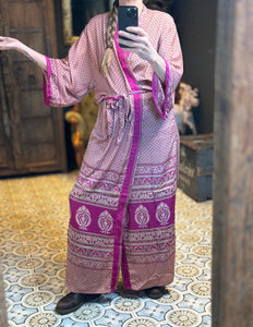 Wat deze kimono echt bijzonder maakt, is het gebruik van upcycled Sari zijde, gecombineerd met andere uitzonderlijk mooie stoffen. Dit betekent dat elke kimono een uniek meesterwerk is, met zijn eigen karakter en verhaal. Bij TwoSisters geloven we in duurzaamheid en het creëren van iets moois uit hergebruikte materialen. Met deze kimono draag je niet alleen een prachtig kledingstuk, maar ook een stukje ethische mode.