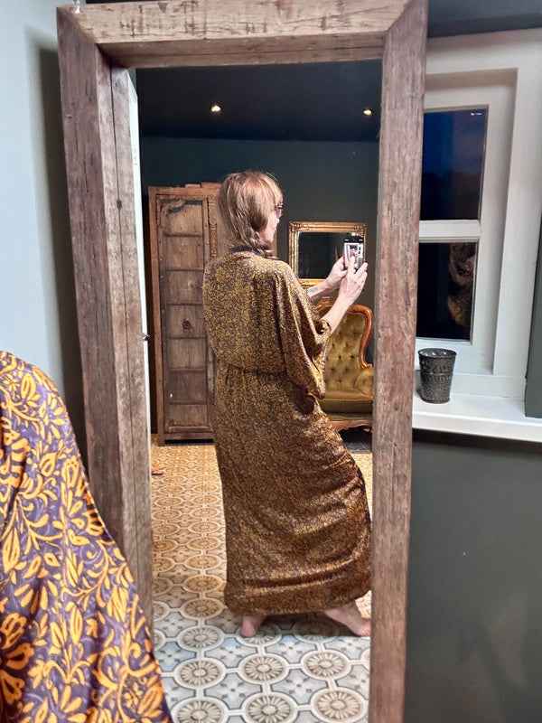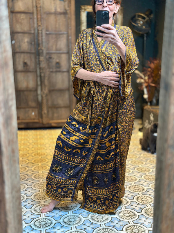 Wat deze kimono echt bijzonder maakt, is het gebruik van upcycled Sari zijde, gecombineerd met andere uitzonderlijk mooie stoffen. Dit betekent dat elke kimono een uniek meesterwerk is, met zijn eigen karakter en verhaal. Bij TwoSisters geloven we in duurzaamheid en het creëren van iets moois uit hergebruikte materialen. Met deze kimono draag je niet alleen een prachtig kledingstuk, maar ook een stukje ethische mode.