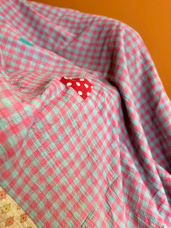 Een Kantha Quilt is niet alleen prachtig als bedsprei, plaid of bankkleed, maar ook een echte sfeermaker in huis. Drapeer hem nonchalant over je bank, aan het voeteneinde van je bed, of neem hem mee naar buiten voor een stijlvolle picknick – hij geeft overal een warme, bohemian touch.