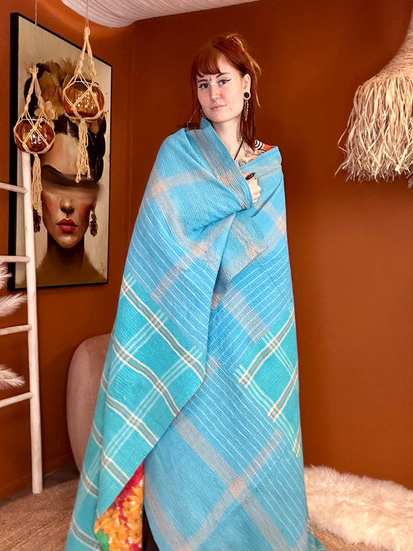 Een Kantha Quilt is niet alleen prachtig als bedsprei, plaid of bankkleed, maar ook een echte sfeermaker in huis. Drapeer hem nonchalant over je bank, aan het voeteneinde van je bed, of neem hem mee naar buiten voor een stijlvolle picknick – hij geeft overal een warme, bohemian touch.