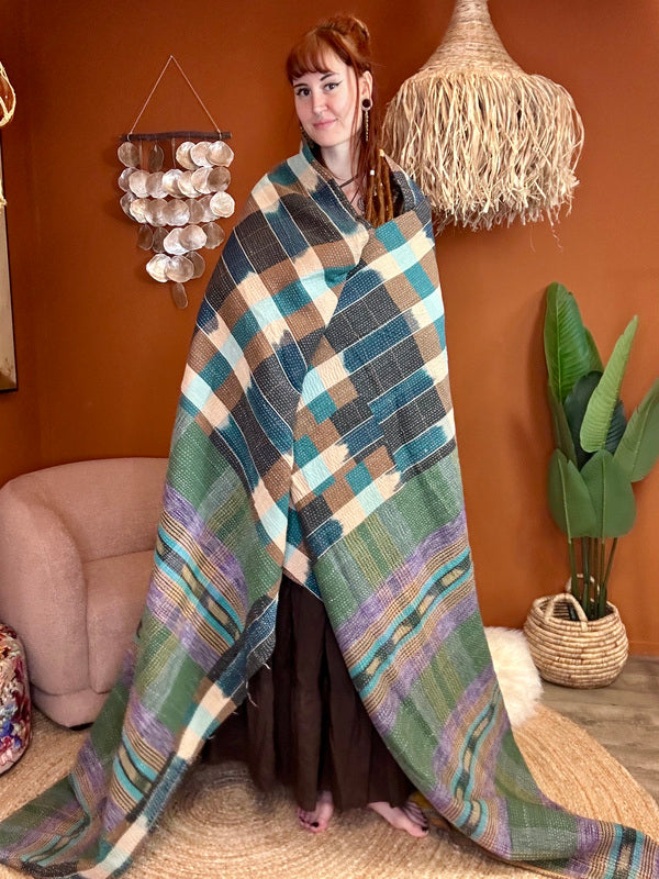 Een Kantha Quilt is niet alleen prachtig als bedsprei, plaid of bankkleed, maar ook een echte sfeermaker in huis. Drapeer hem nonchalant over je bank, aan het voeteneinde van je bed, of neem hem mee naar buiten voor een stijlvolle picknick – hij geeft overal een warme, bohemian touch.