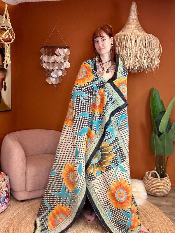 Een Kantha Quilt is niet alleen prachtig als bedsprei, plaid of bankkleed, maar ook een echte sfeermaker in huis. Drapeer hem nonchalant over je bank, aan het voeteneinde van je bed, of neem hem mee naar buiten voor een stijlvolle picknick – hij geeft overal een warme, bohemian touch.