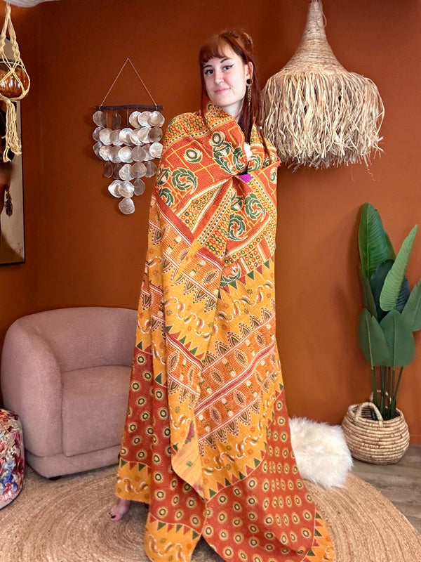Een Kantha Quilt is niet alleen prachtig als bedsprei, plaid of bankkleed, maar ook een echte sfeermaker in huis. Drapeer hem nonchalant over je bank, aan het voeteneinde van je bed, of neem hem mee naar buiten voor een stijlvolle picknick – hij geeft overal een warme, bohemian touch.