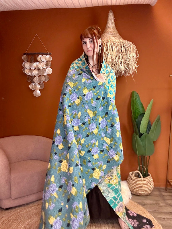 Een Kantha Quilt is niet alleen prachtig als bedsprei, plaid of bankkleed, maar ook een echte sfeermaker in huis. Drapeer hem nonchalant over je bank, aan het voeteneinde van je bed, of neem hem mee naar buiten voor een stijlvolle picknick – hij geeft overal een warme, bohemian touch.
