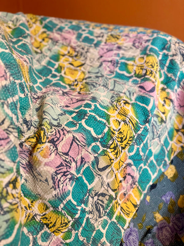 Elke Kantha Quilt is aan beide zijden te gebruiken, en wat het extra magisch maakt: elke kant heeft een compleet ander patroon én een andere kleurencombinatie. Twee stijlen in één deken – perfect om te wisselen, te spelen met sfeer en je interieur steeds opnieuw tot leven te brengen.