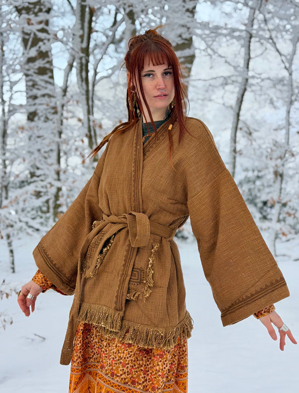 Unieke Handgemaakte Kimono Vest met Aztec Print Ontdek deze prachtige kimono vest met een opvallende Aztec print. Elk stuk is... Lees meer