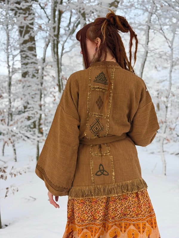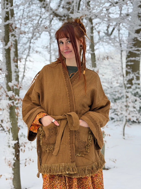 Kimono / Vest Aztec print Warm Bruin