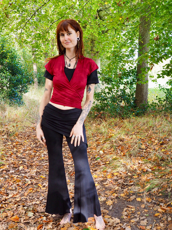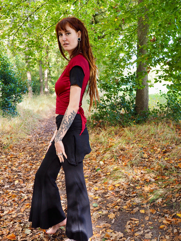 De Lakshmi Top – genoemd naar de godin van schoonheid en overvloed – is een verfijnd en vrouwelijk yoga vestje dat je zowel aan de voor- als achterkant kunt knopen.