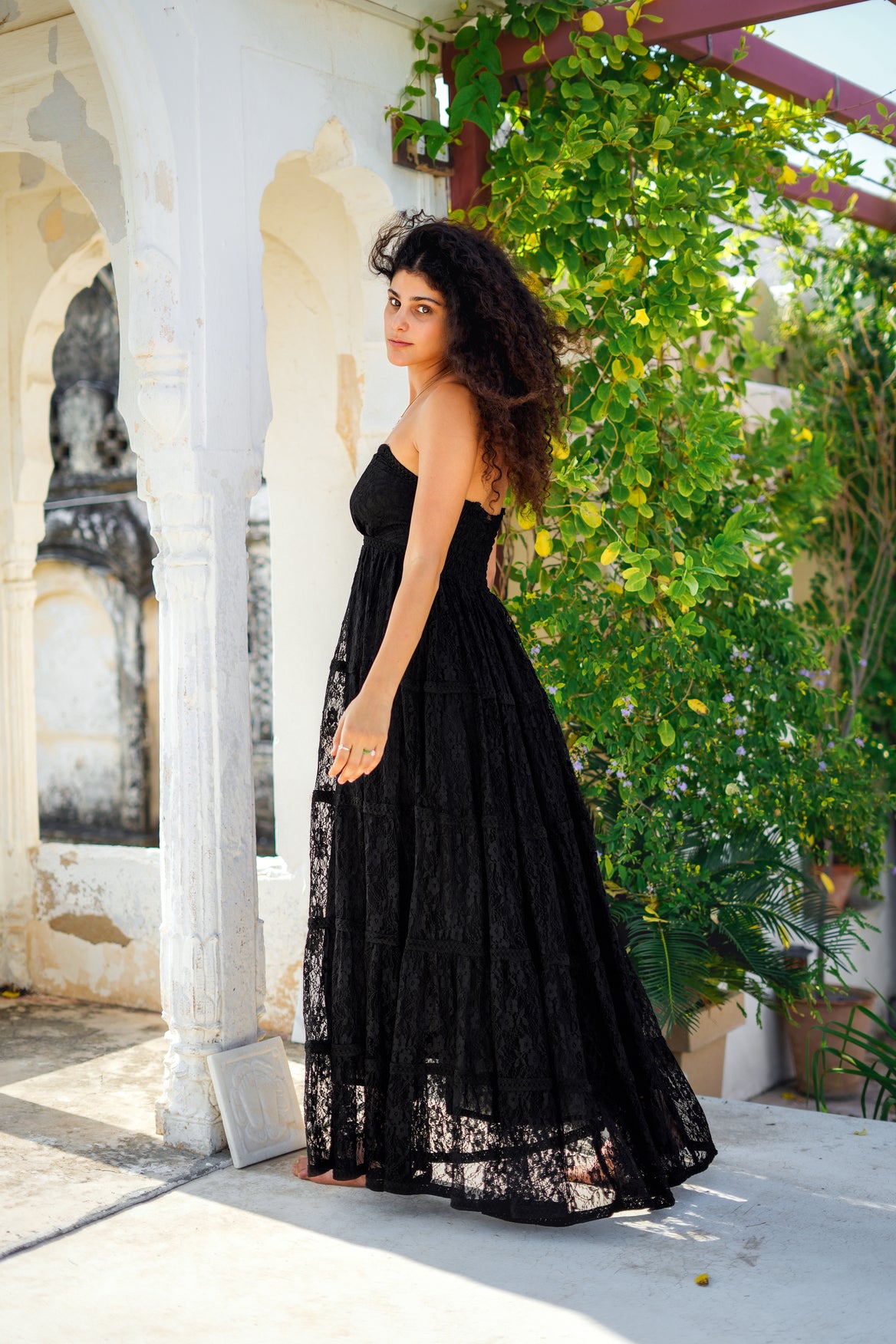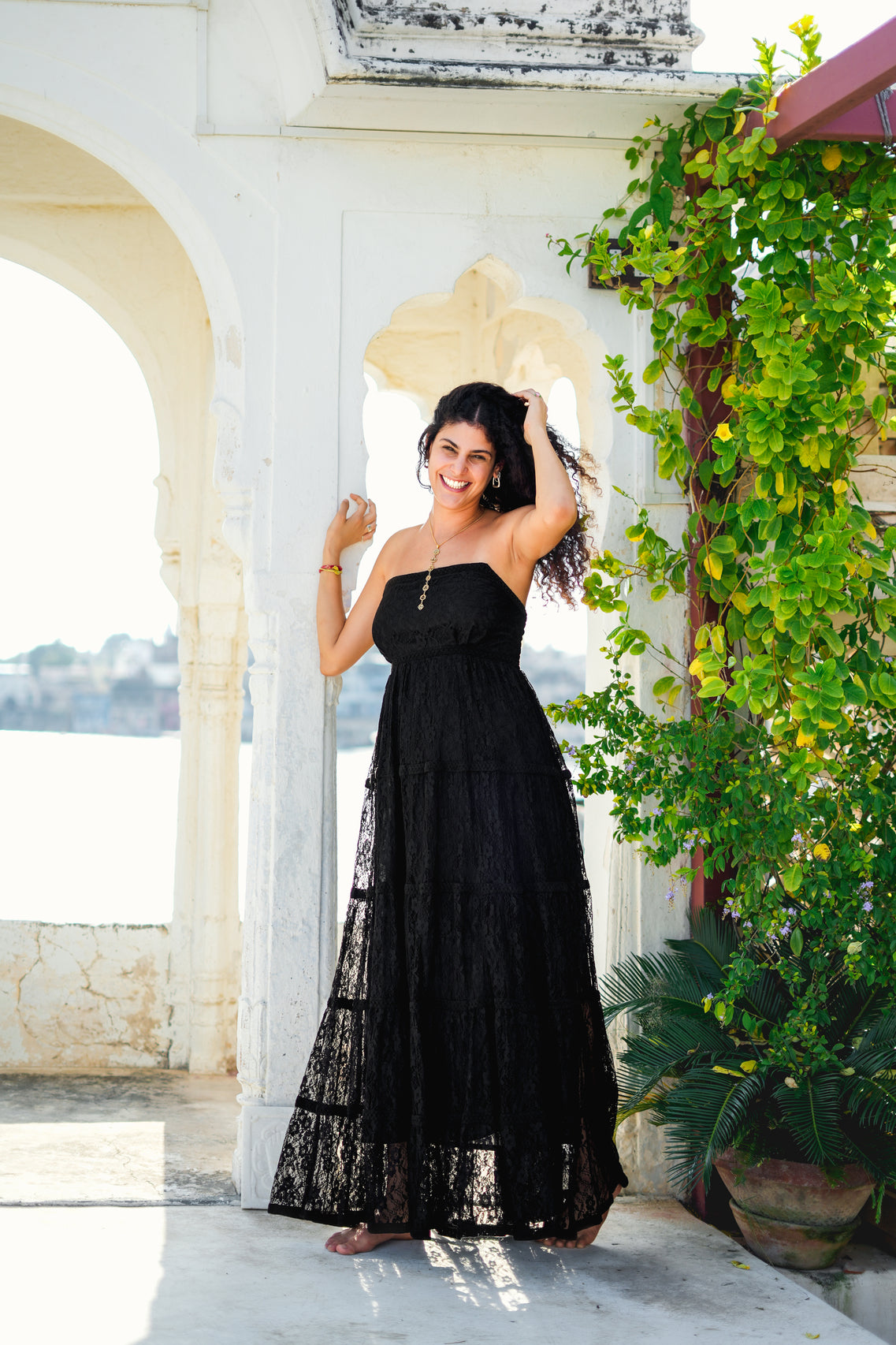 Met elegante kanten banen die vanaf de borst wijd uitlopen, geeft Litha je een gevoel van vrijheid en lichtheid terwijl je je moeiteloos door de dag beweegt. 🌸 De smockelastiek aan de achterkant zorgt voor een perfecte, comfortabele fit, zelfs voor dames met een grotere cupmaat. En dankzij de verstelbare schouderbandjes pas je de jurk eenvoudig aan voor een look die jou op het lijf geschreven is. )ps. tijdens de shoot liet een van de bandje los) maar deze jurk is natuurlijk met bandjes!
