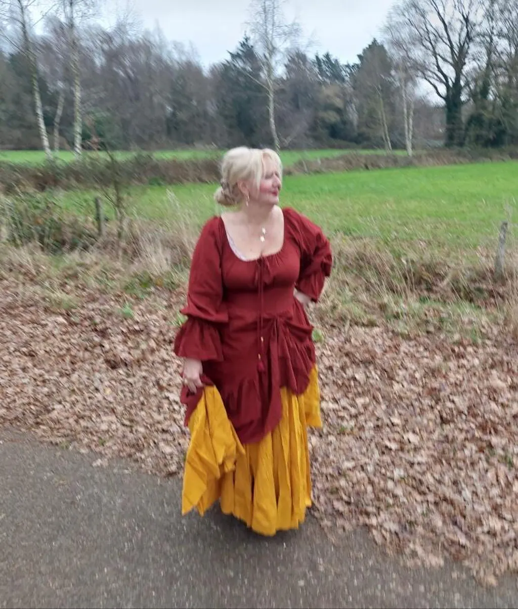 De mouwen reiken tot aan de pols, maar met het elastiek kun je ze gemakkelijk opstropen tot boven de elleboog, zodat je de jurk helemaal naar eigen stijl kunt dragen. Kortom, de Vaiana jurk combineert stijl, comfort en veelzijdigheid – perfect voor iedere gelegenheid waarin je wilt stralen als nooit tevoren!