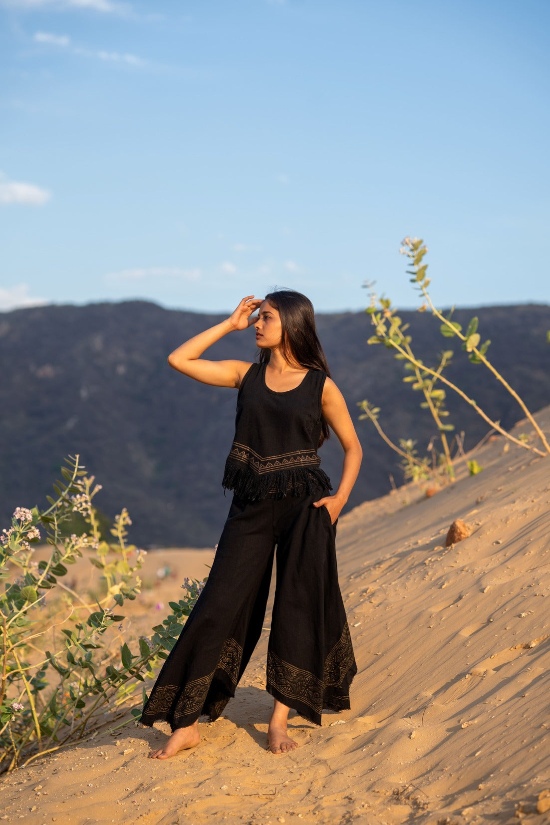 Combineer ‘m met de bijpassende Celestial Nomad Top of een van onze tops en Poncho's voor de ultieme Mystic Nomad look. Laat je meevoeren, dans op blote voeten, voel de vrijheid.