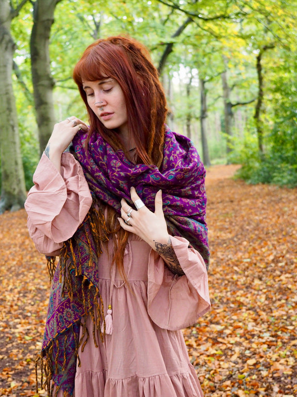 Een echte Two Sisters favorite! Deze heerlijke omslagdoek uit India is gemaakt van super zachte fleece met een betoverend paisley-design. Zo mooi dat je haar als sjaal, omslagdoek of zelfs als kleine plaid kunt gebruiken — waar je ook bent, ze geeft je warmte, stijl en een vleugje magie.