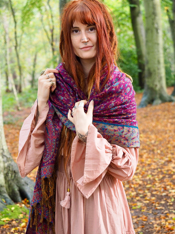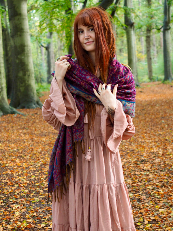 Een echte Two Sisters favorite! Deze heerlijke omslagdoek uit India is gemaakt van super zachte fleece met een betoverend paisley-design. Zo mooi dat je haar als sjaal, omslagdoek of zelfs als kleine plaid kunt gebruiken — waar je ook bent, ze geeft je warmte, stijl en een vleugje magie.