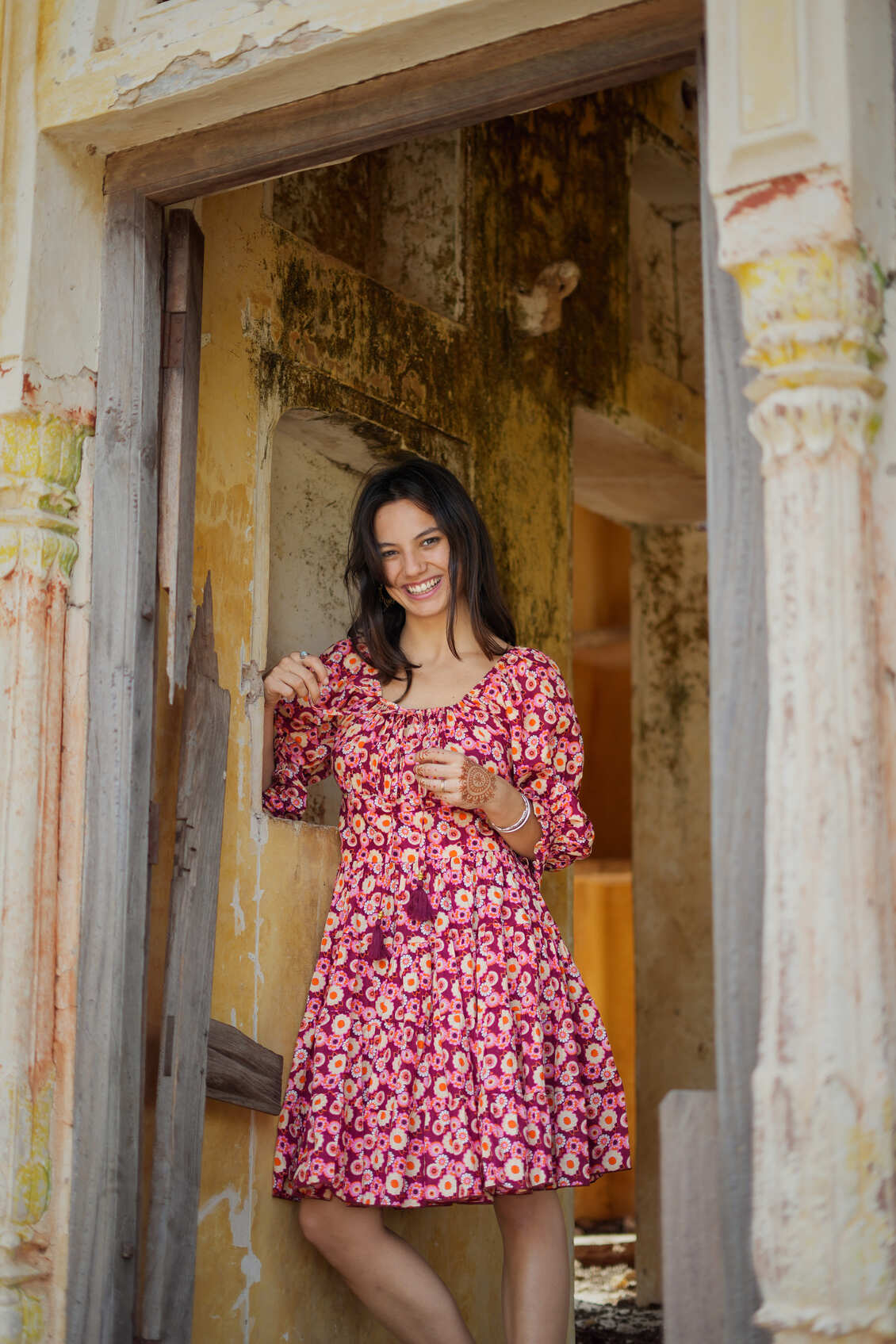 Onze korte Vaiana jurk is met liefde ontworpen en met zorg vervaardigd in India. Het resultaat? Een adembenemende jurk met een vrouwelijke uitstraling die je meteen zal betoveren. Dit model heeft dezelfde perfecte pasvorm als de lange versie, maar dan in een kortere variant – ideaal voor een zomerse dag of een feestelijke gelegenheid!