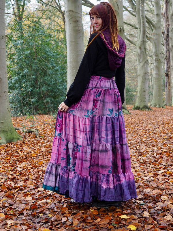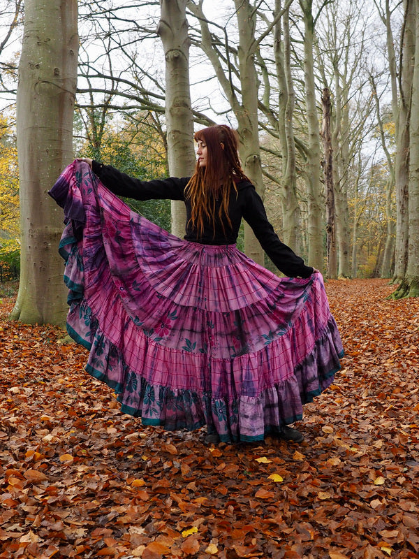 Ontdek onze Zijden Gypsy rok – een bizar gave, ultravrouwelijke lange bohemian rok gemaakt van upcycled vintage sari zijde en TieDye geverfd. Elk stuk is volledig uniek, kleurrijk en handgemaakt in India. 🌺