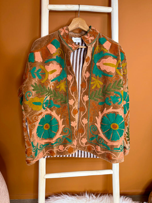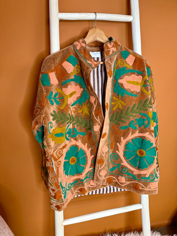 Velvet Suzani Jacket Betere foto's volgen! Een jas die voelt en eruit ziet als een kunstwerk. Dit bijzondere jack is... Lees meer