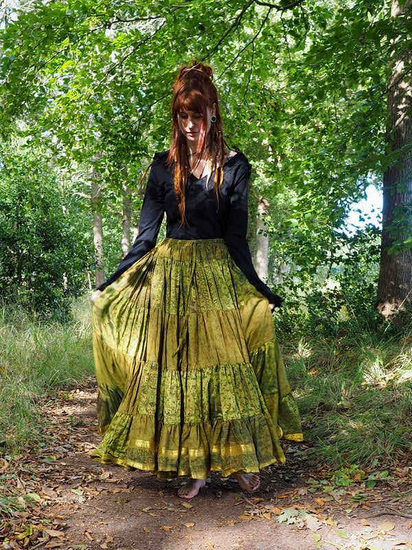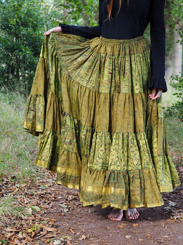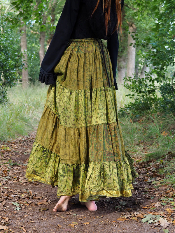 Zijden Gypsy rok Bizar gave vrouwelijke Gypsy, Bohemian kleurrijke rok gemaakt van Upcycled Sari Zijde. Ontzettend mooi! Door de lichtval is de kleur van de... Lees meer