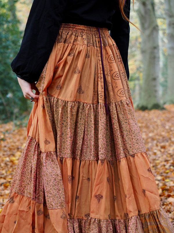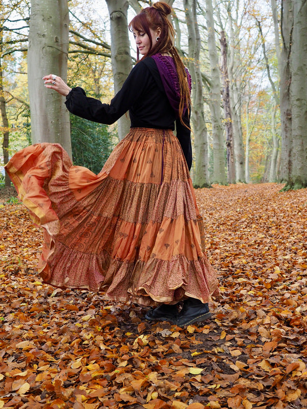 Zijden Gypsy rok Bizar gave vrouwelijke Gypsy, Bohemian kleurrijke rok gemaakt van Upcycled Sari Zijde. Ontzettend mooi! Door de lichtval is de kleur van de... Lees meer
