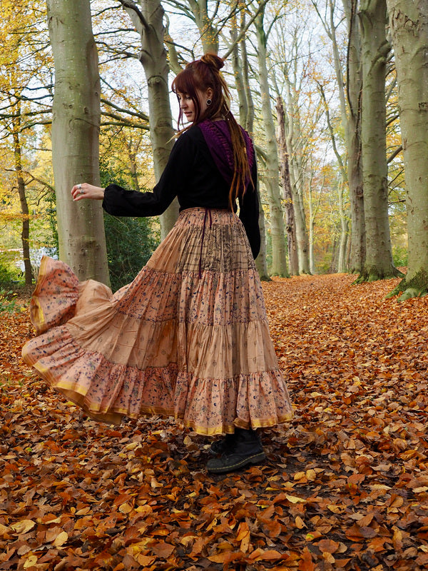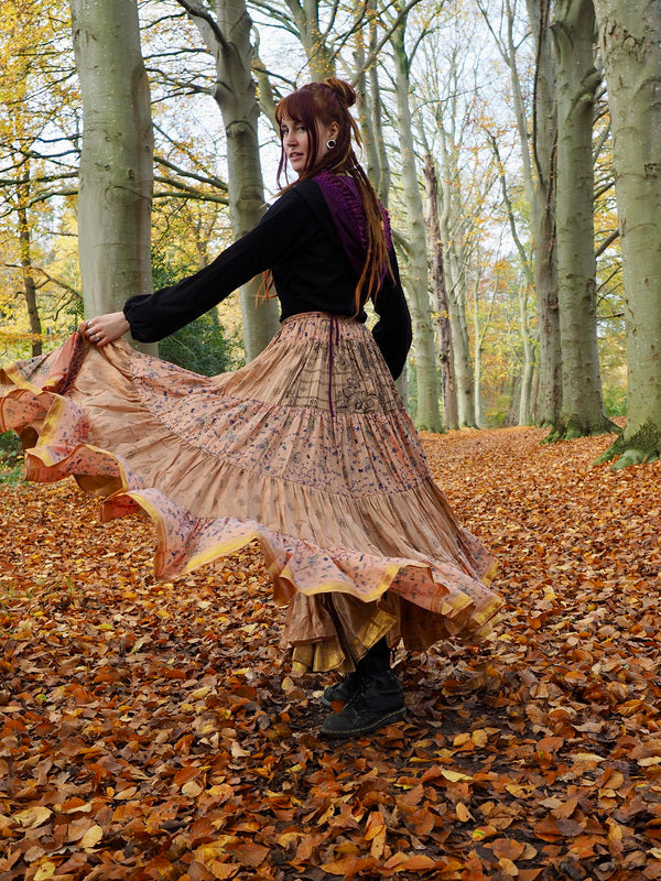 Zijden Gypsy rok Bizar gave vrouwelijke Gypsy, Bohemian kleurrijke rok gemaakt van Upcycled Sari Zijde. Ontzettend mooi! Door de lichtval is de kleur van de... Lees meer