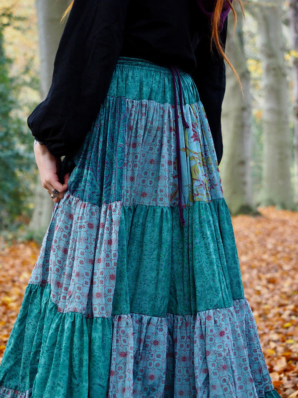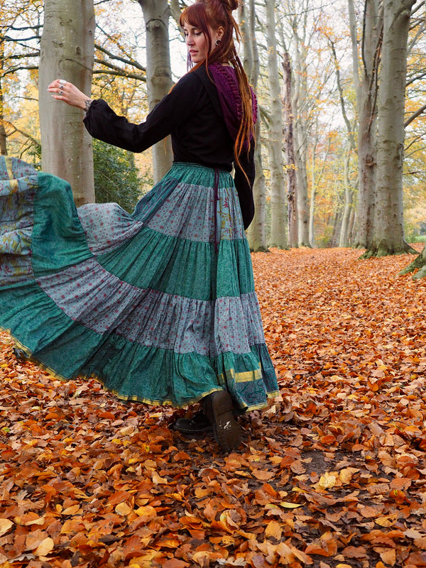 Zijden Gypsy rok Bizar gave vrouwelijke Gypsy, Bohemian kleurrijke rok gemaakt van Upcycled Sari Zijde. Ontzettend mooi! Door de lichtval is de kleur van de... Lees meer