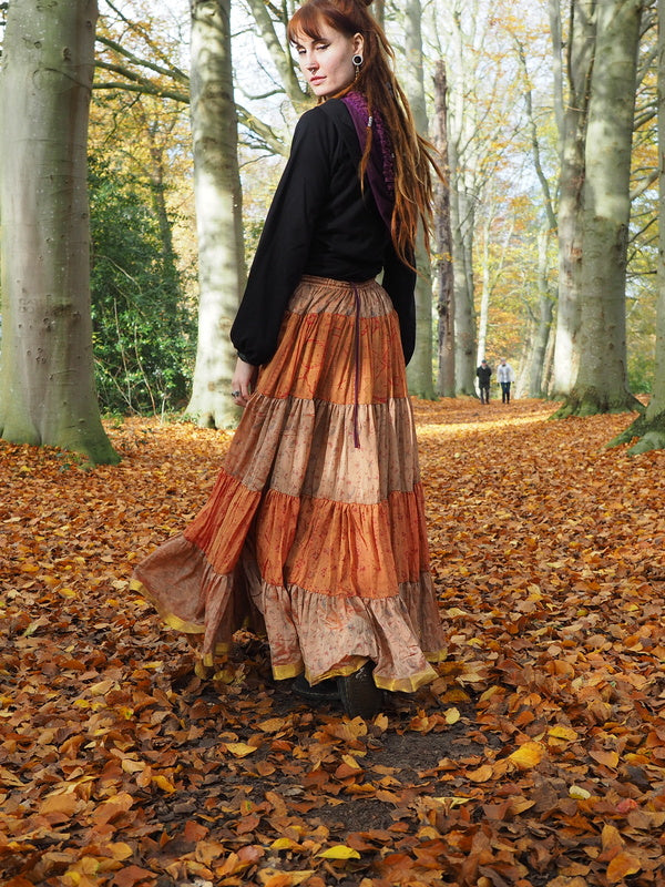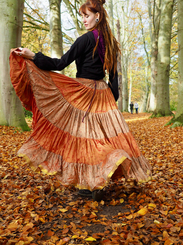 Zijden Gypsy rok Bizar gave vrouwelijke Gypsy, Bohemian kleurrijke rok gemaakt van Upcycled Sari Zijde. Ontzettend mooi! Door de lichtval is de kleur van de... Lees meer