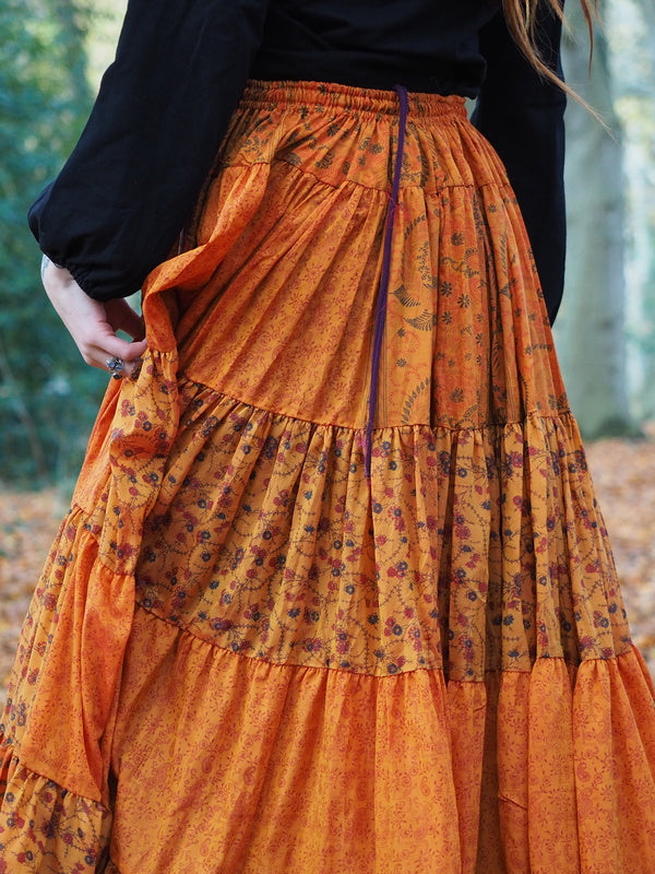 Zijden Gypsy rok Bizar gave vrouwelijke Gypsy, Bohemian kleurrijke rok gemaakt van Upcycled Sari Zijde. Ontzettend mooi! Door de lichtval is de kleur van de... Lees meer