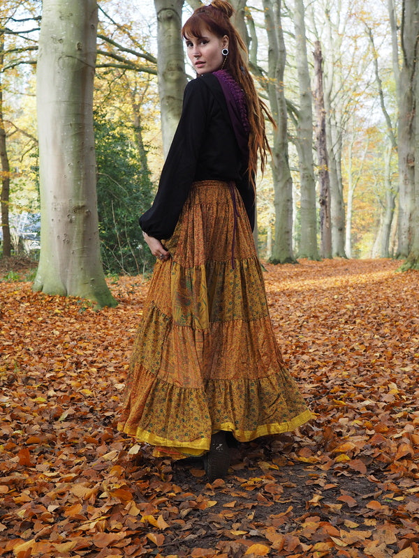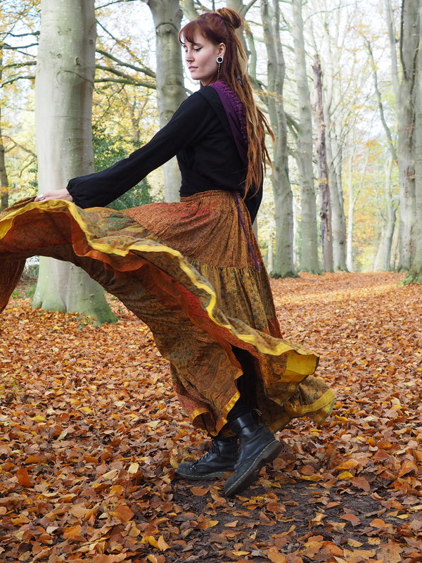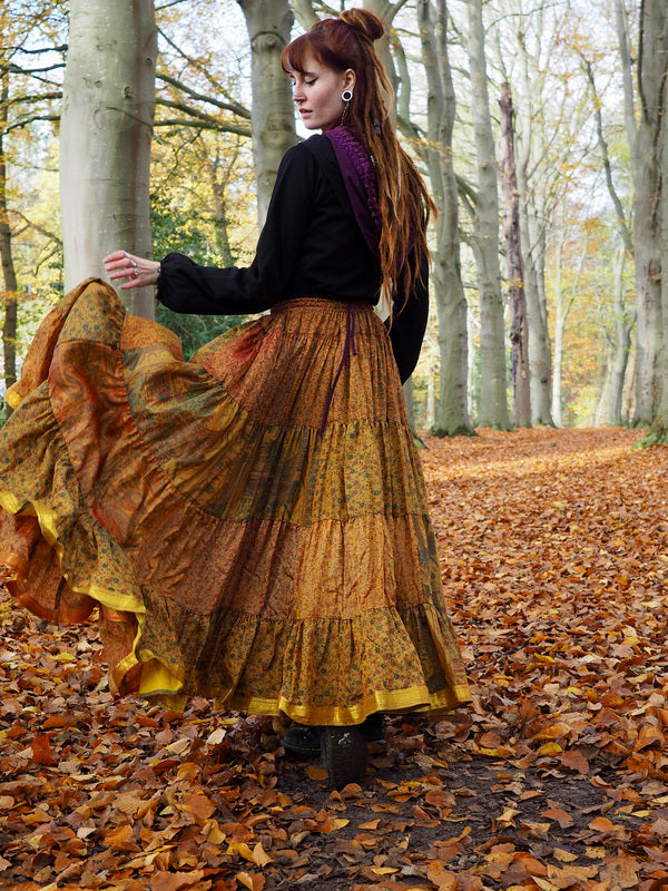 Zijden Gypsy rok Bizar gave vrouwelijke Gypsy, Bohemian kleurrijke rok gemaakt van Upcycled Sari Zijde. Ontzettend mooi! Door de lichtval is de kleur van de... Lees meer