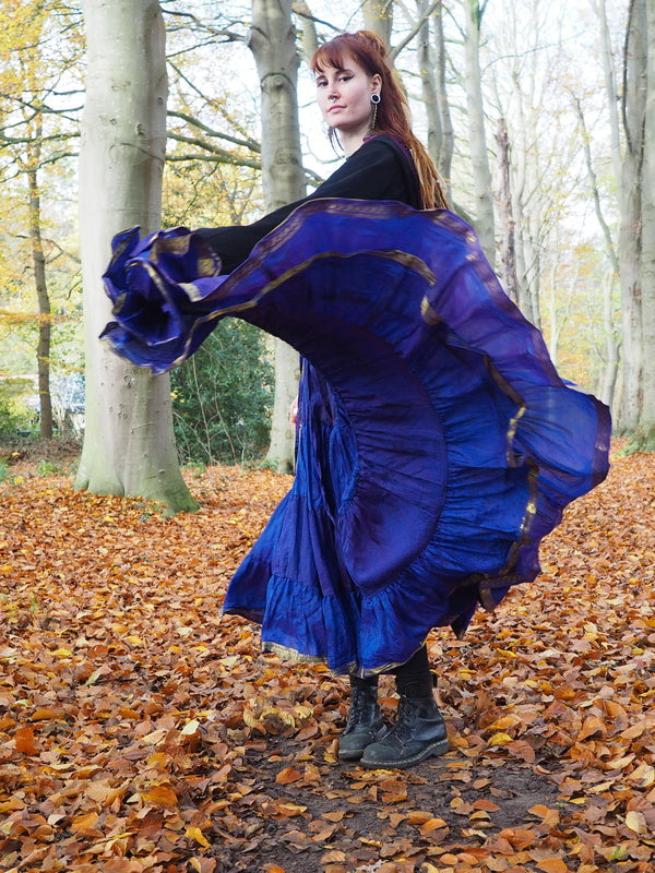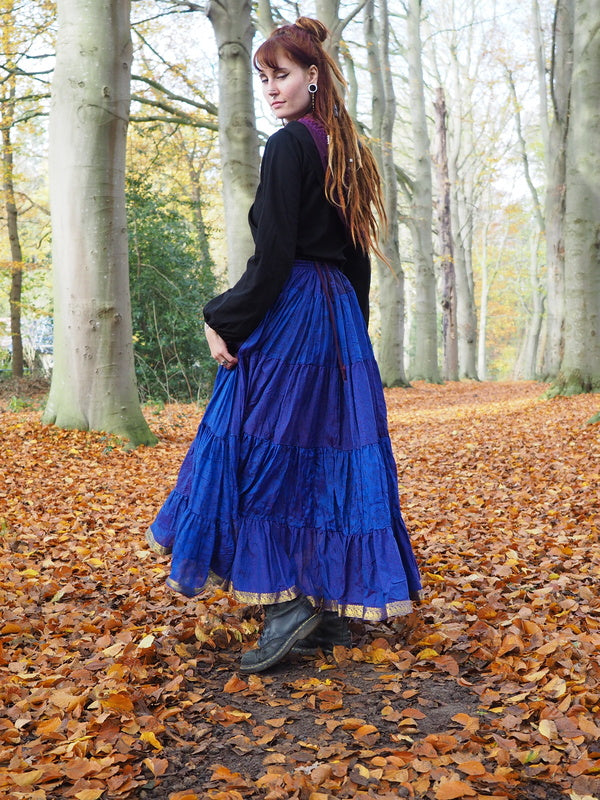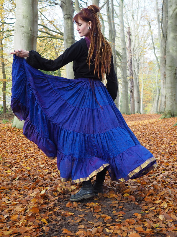 Zijden Gypsy rok Bizar gave vrouwelijke Gypsy, Bohemian kleurrijke rok gemaakt van Upcycled Sari Zijde. Ontzettend mooi! Door de lichtval is de kleur van de... Lees meer