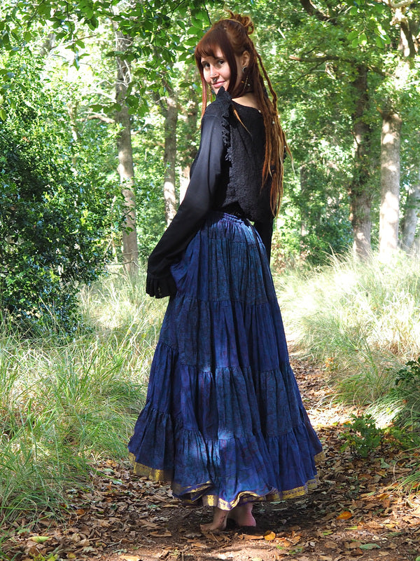 Al onze zijden rokken zijn gemaakt van Upcycled Sari’s, vintage Sari’s, dat betekent dat deze Sari’s gedragen zijn door een Indiase vrouw. Zo leeft haar Spirit door in deze waanzinnige mooie rokken.