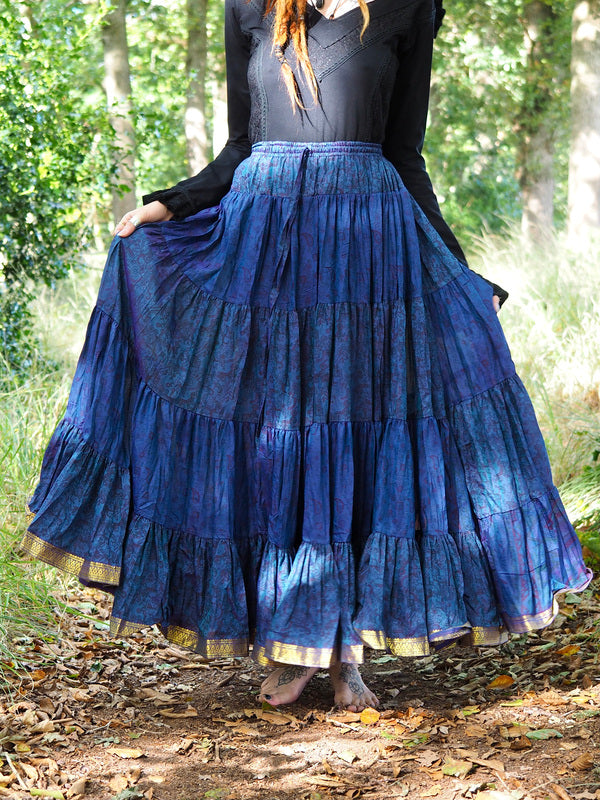 Zijden Gypsy rok Bizar gave vrouwelijke Gypsy, Bohemian kleurrijke rok gemaakt van Upcycled Sari Zijde. Ontzettend mooi! Door de lichtval is de kleur van de... Lees meer