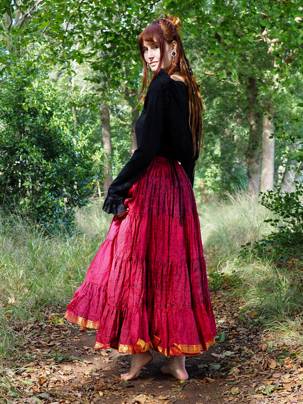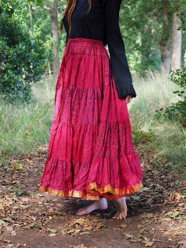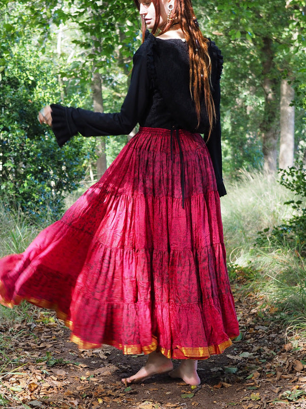 Zijden Gypsy rok Bizar gave vrouwelijke Gypsy, Bohemian kleurrijke rok gemaakt van Upcycled Sari Zijde. Ontzettend mooi! Door de lichtval is de kleur van de... Lees meer