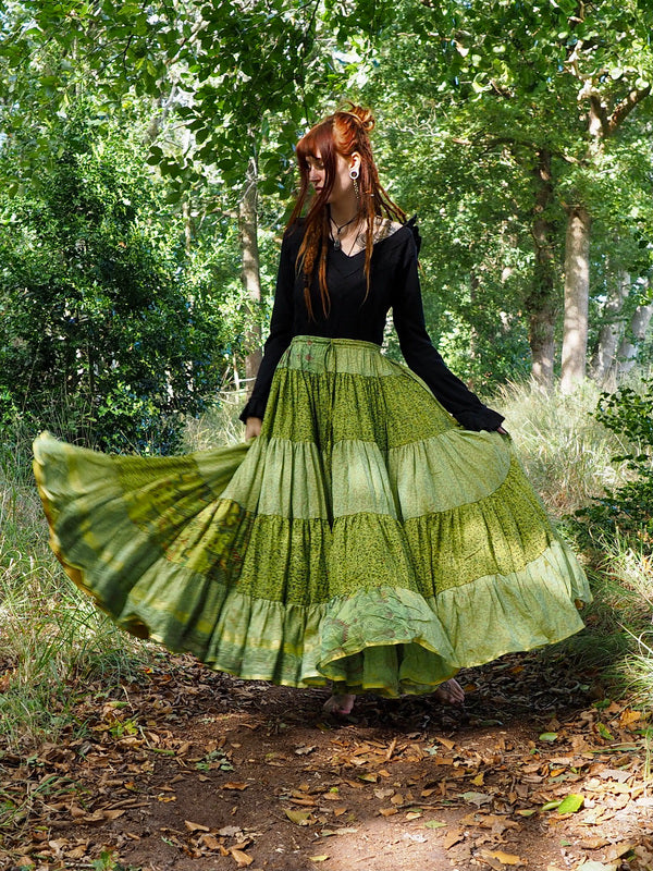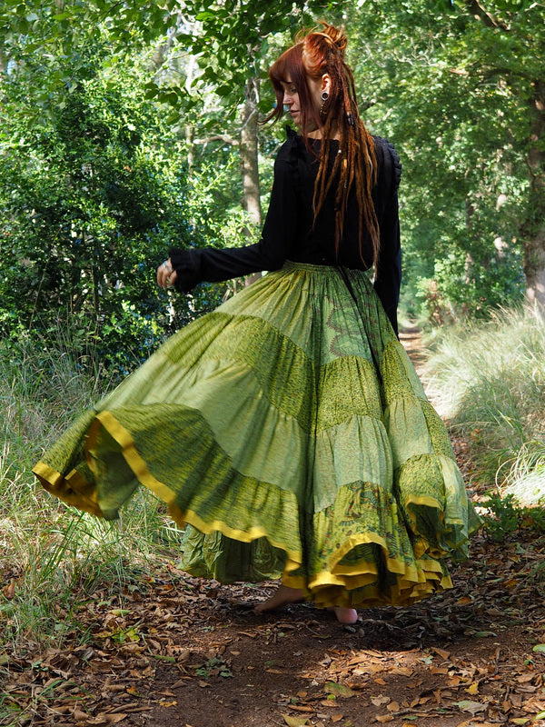 Zijden Gypsy rok Bizar gave vrouwelijke Gypsy, Bohemian kleurrijke rok gemaakt van Upcycled Sari Zijde. Ontzettend mooi! Door de lichtval is de kleur van de... Lees meer
