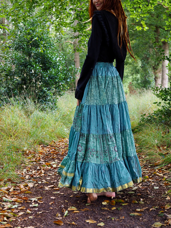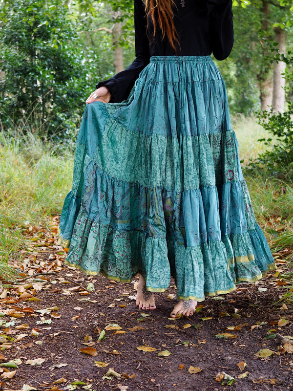 Zijden Gypsy rok Bizar gave vrouwelijke Gypsy, Bohemian kleurrijke rok gemaakt van Upcycled Sari Zijde. Ontzettend mooi! Door de lichtval is de kleur van de... Lees meer