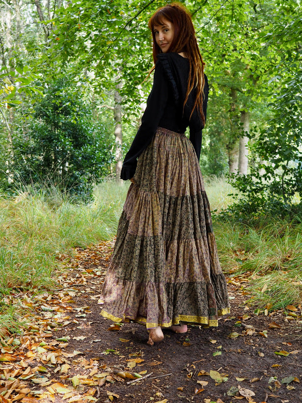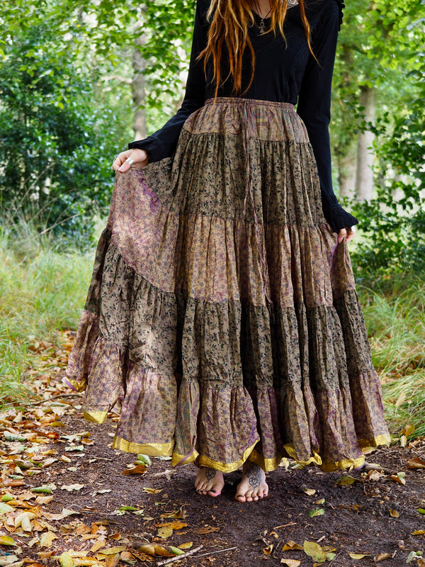 Zijden Gypsy rok Bizar gave vrouwelijke Gypsy, Bohemian kleurrijke rok gemaakt van Upcycled Sari Zijde. Ontzettend mooi! Door de lichtval is de kleur van de... Lees meer