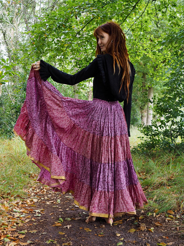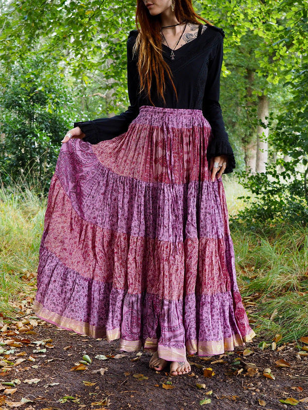 Zijden Gypsy rok Bizar gave vrouwelijke Gypsy, Bohemian kleurrijke rok gemaakt van Upcycled Sari Zijde. Ontzettend mooi! Door de lichtval is de kleur van de... Lees meer