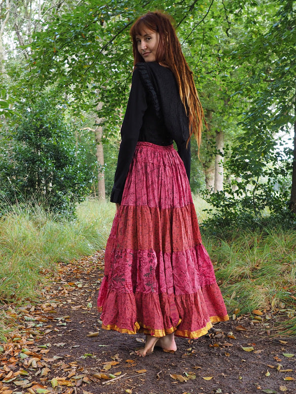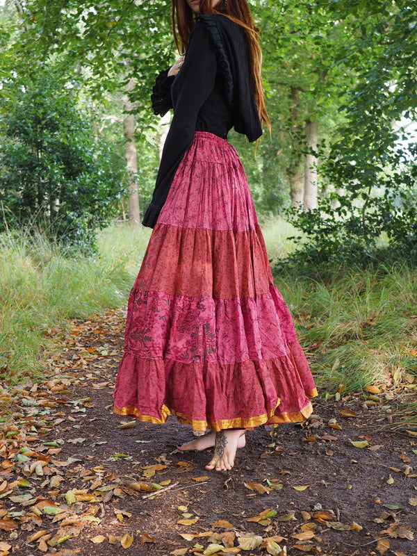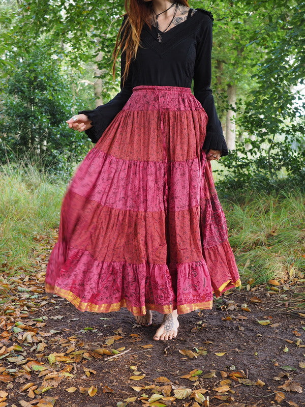 Zijden Gypsy rok Bizar gave vrouwelijke Gypsy, Bohemian kleurrijke rok gemaakt van Upcycled Sari Zijde. Ontzettend mooi! Door de lichtval is de kleur van de... Lees meer