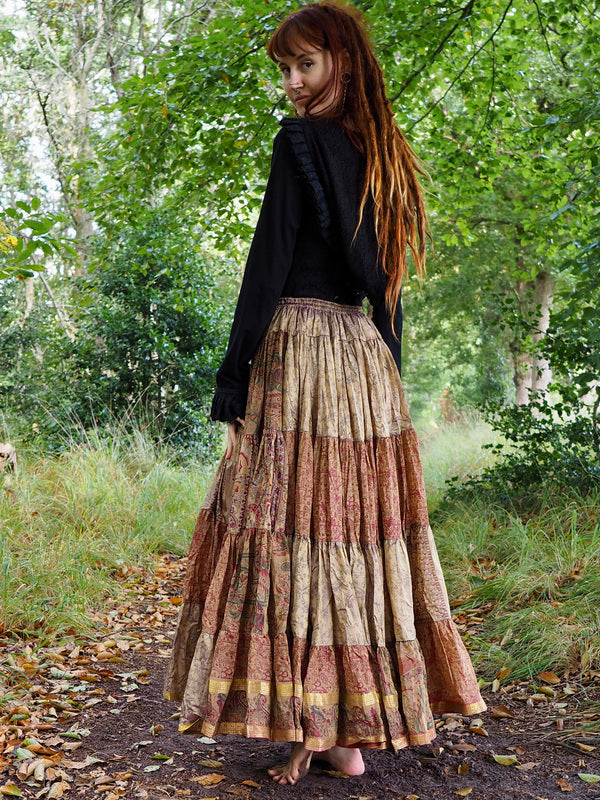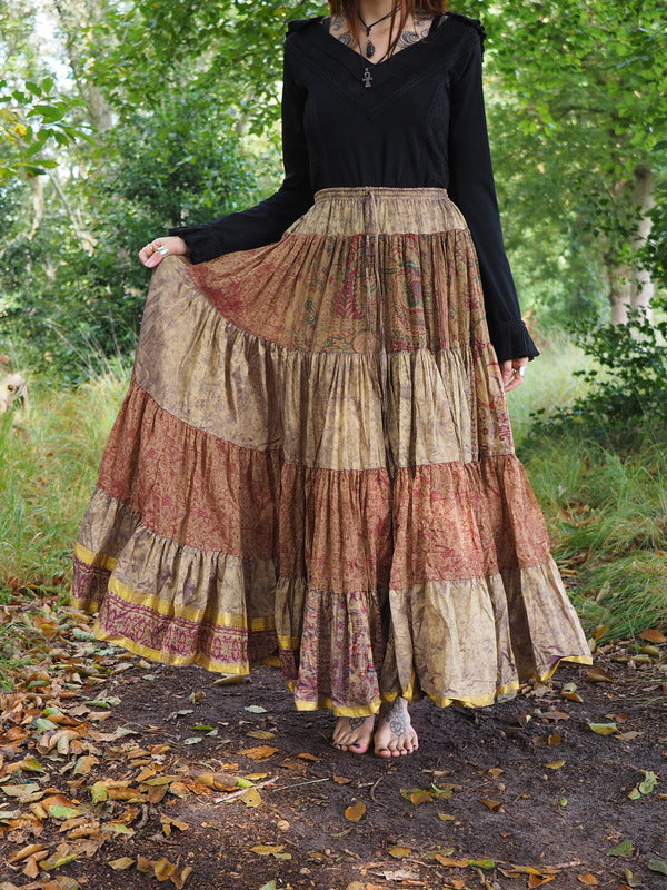 Zijden Gypsy rok Bizar gave vrouwelijke Gypsy, Bohemian kleurrijke rok gemaakt van Upcycled Sari Zijde. Ontzettend mooi! Door de lichtval is de kleur van de... Lees meer