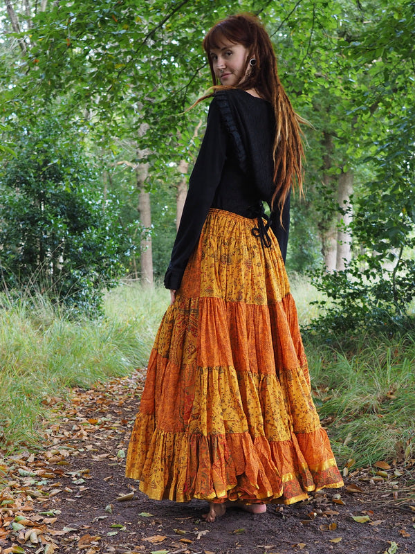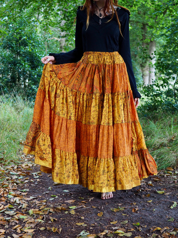 Zijden Gypsy rok Bizar gave vrouwelijke Gypsy, Bohemian kleurrijke rok gemaakt van Upcycled Sari Zijde. Ontzettend mooi! Door de lichtval is de kleur van de... Lees meer