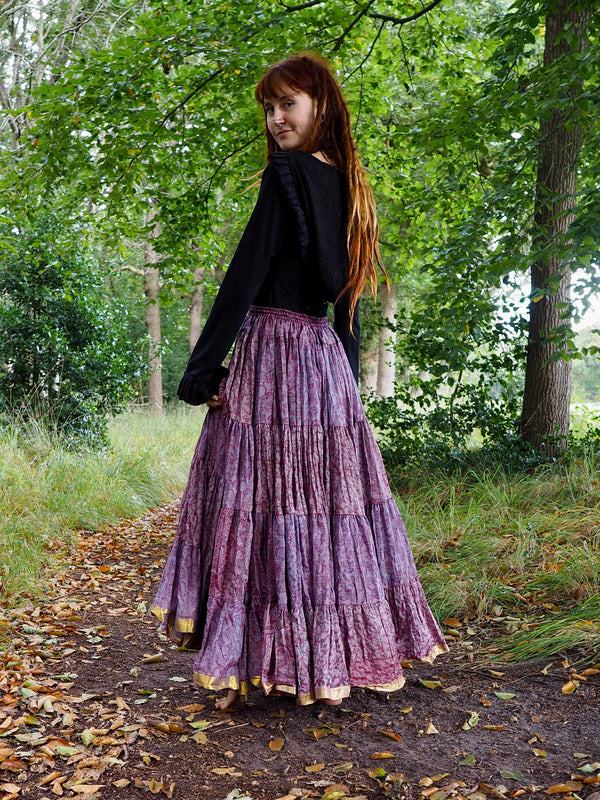 Al onze zijden rokken zijn gemaakt van Upcycled Sari’s, vintage Sari’s, dat betekent dat deze Sari’s gedragen zijn door een Indiase vrouw. Zo leeft haar Spirit door in deze waanzinnige mooie rokken.