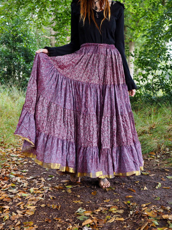 Zijden Gypsy rok Bizar gave vrouwelijke Gypsy, Bohemian kleurrijke rok gemaakt van Upcycled Sari Zijde. Ontzettend mooi! Door de lichtval is de kleur van de... Lees meer