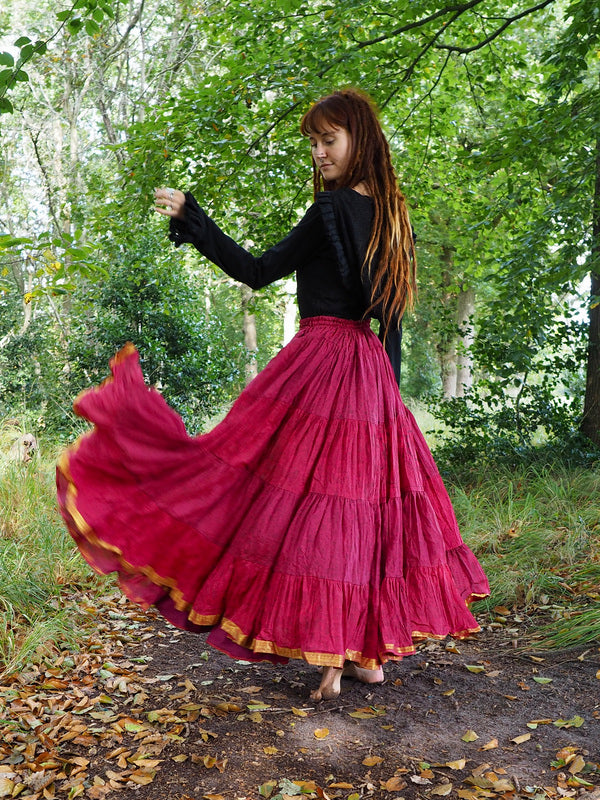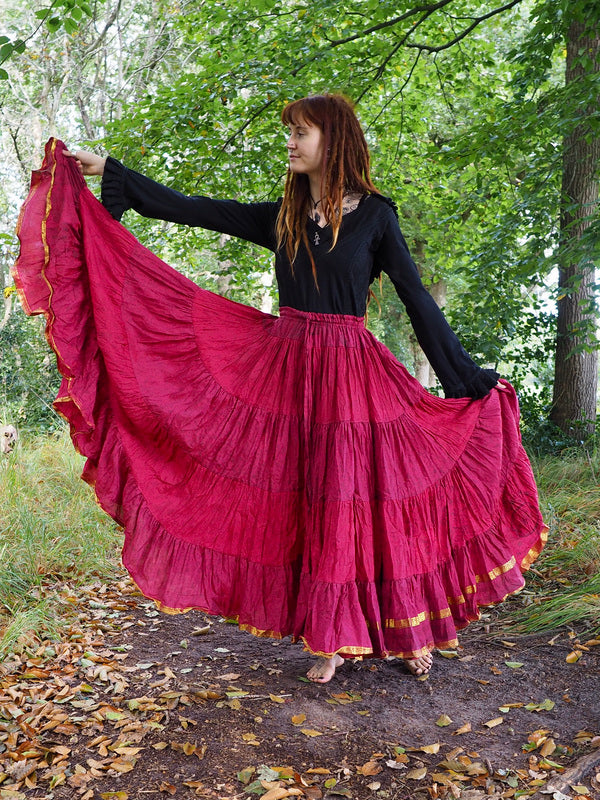 Al onze zijden rokken zijn gemaakt van Upcycled Sari’s, vintage Sari’s, dat betekent dat deze Sari’s gedragen zijn door een Indiase vrouw. Zo leeft haar Spirit door in deze waanzinnige mooie rokken.
