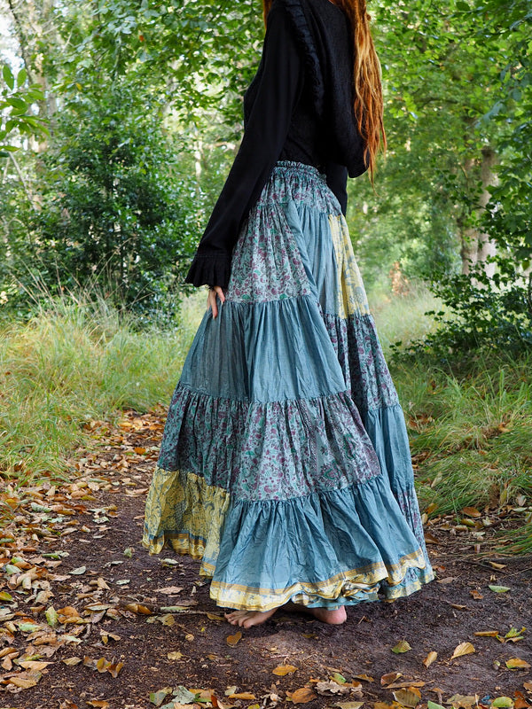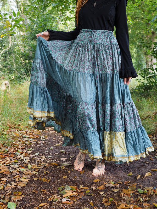 Zijden Gypsy rok Bizar gave vrouwelijke Gypsy, Bohemian kleurrijke rok gemaakt van Upcycled Sari Zijde. Ontzettend mooi! Door de lichtval is de kleur van de... Lees meer