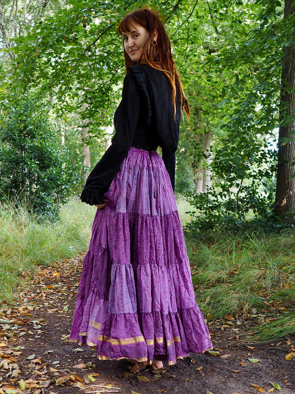 Al onze zijden rokken zijn gemaakt van Upcycled Sari’s, vintage Sari’s, dat betekent dat deze Sari’s gedragen zijn door een Indiase vrouw. Zo leeft haar Spirit door in deze waanzinnige mooie rokken.
