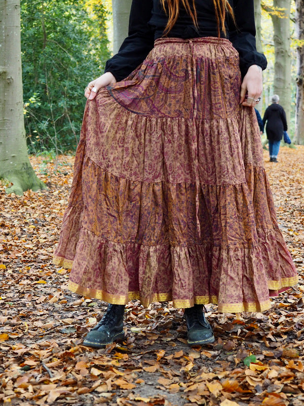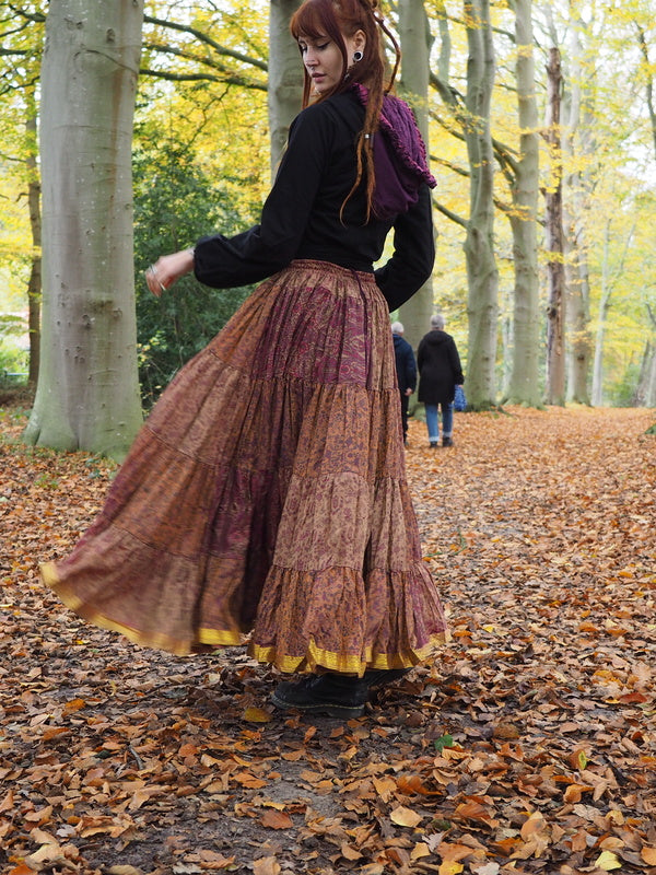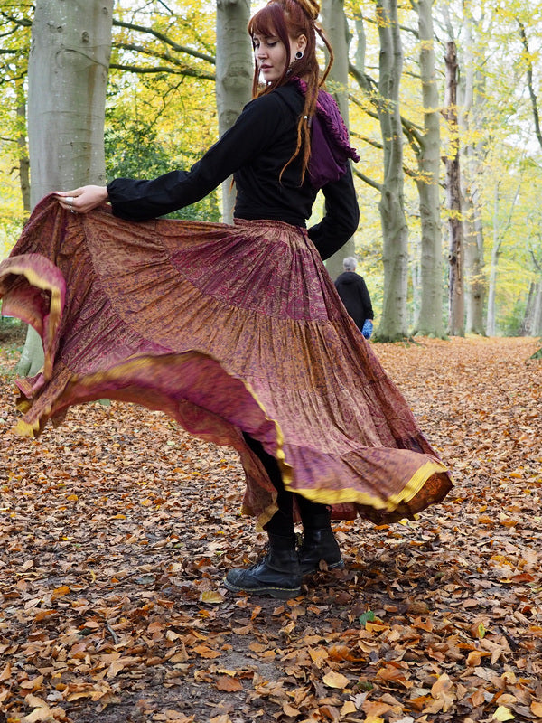 Zijden Gypsy rok Bizar gave vrouwelijke Gypsy, Bohemian kleurrijke rok gemaakt van Upcycled Sari Zijde. Ontzettend mooi! Door de lichtval is de kleur van de... Lees meer