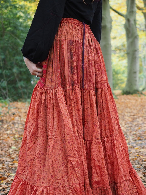 Zijden Gypsy rok Bizar gave vrouwelijke Gypsy, Bohemian kleurrijke rok gemaakt van Upcycled Sari Zijde. Ontzettend mooi! Door de lichtval is de kleur van de... Lees meer