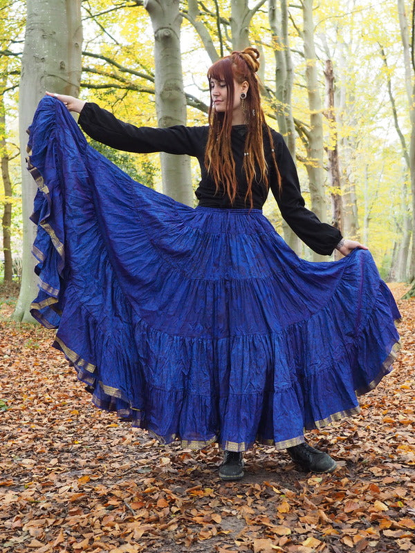 Zijden Gypsy rok Bizar gave vrouwelijke Gypsy, Bohemian kleurrijke rok gemaakt van Upcycled Sari Zijde. Ontzettend mooi! Door de lichtval is de kleur van de... Lees meer