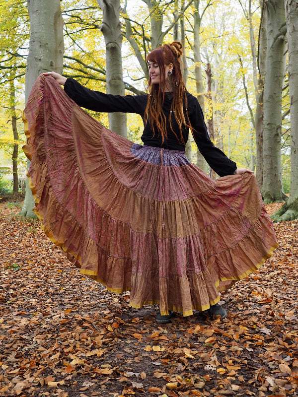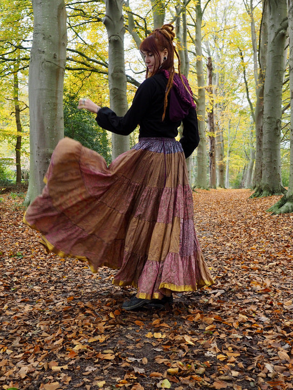 Zijden Gypsy rok Bizar gave vrouwelijke Gypsy, Bohemian kleurrijke rok gemaakt van Upcycled Sari Zijde. Ontzettend mooi! Door de lichtval is de kleur van de... Lees meer